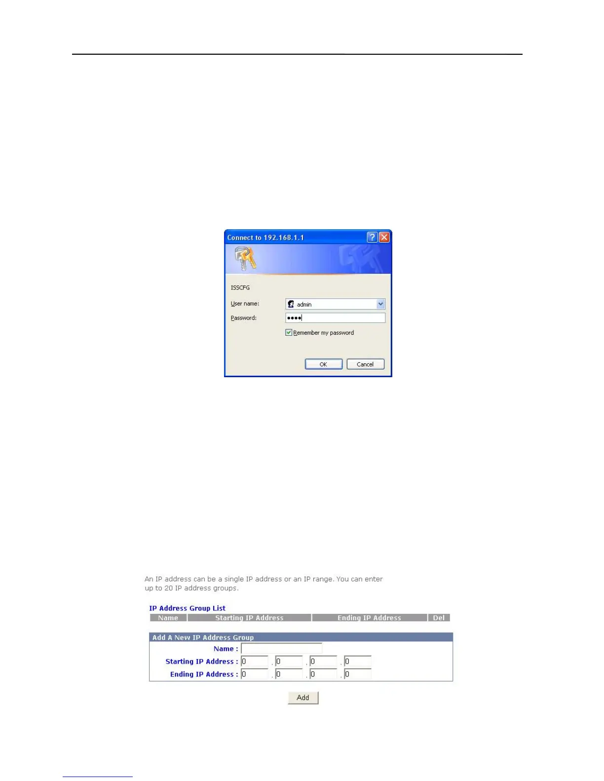 3. It then shows an authentication dialog for the Broadband Firewall Router. Type the