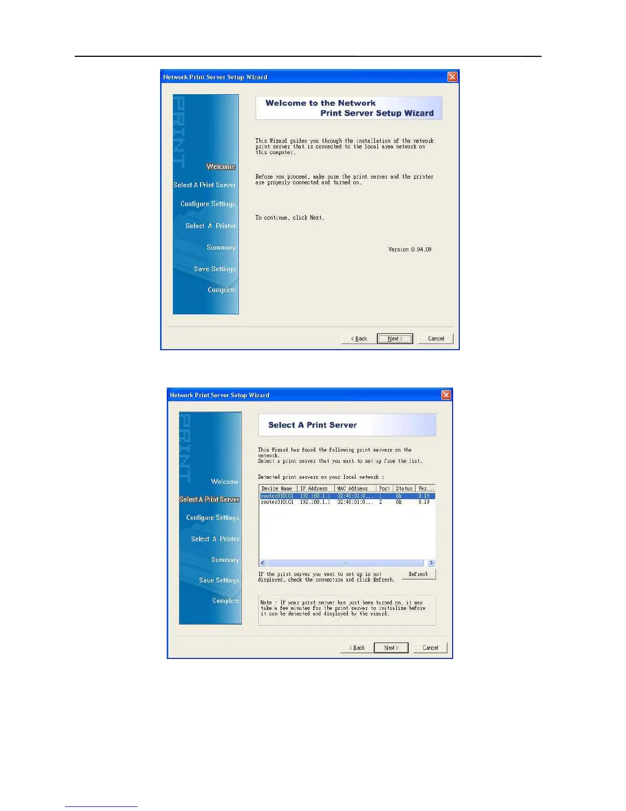5. Select the print server port that you want to configure and click Next. Port 1 for Parallel