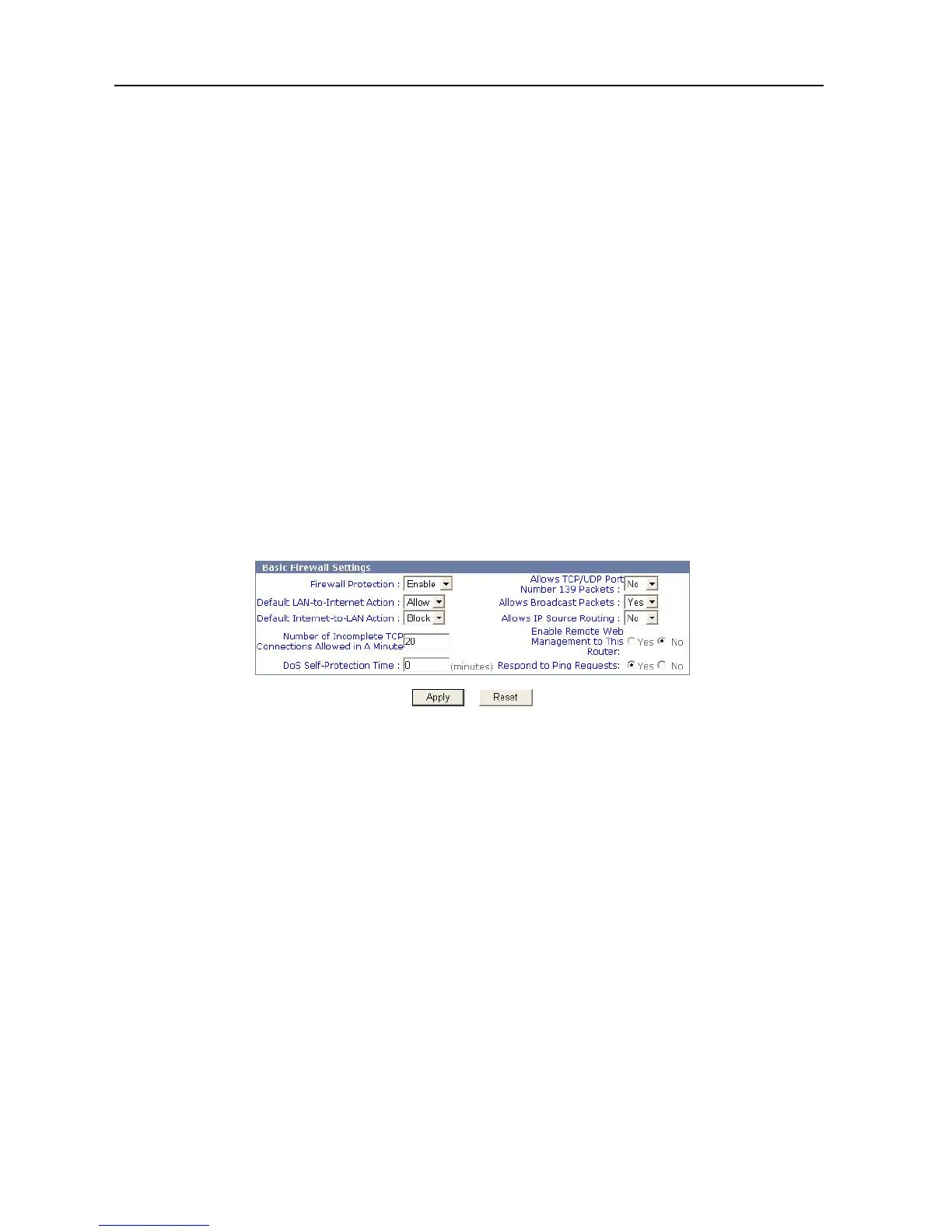 network, the Broadband Firewall Router will lock up. The default time is “0 minute”.