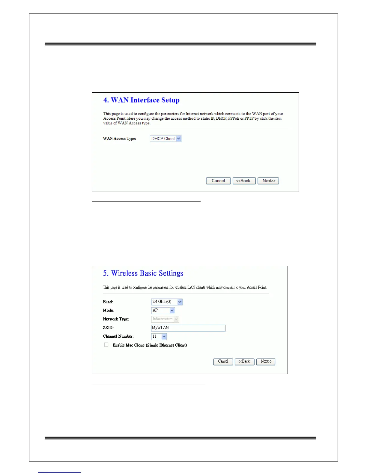 Network Type SSID, Channel Number, Enable Mac Clone(Single