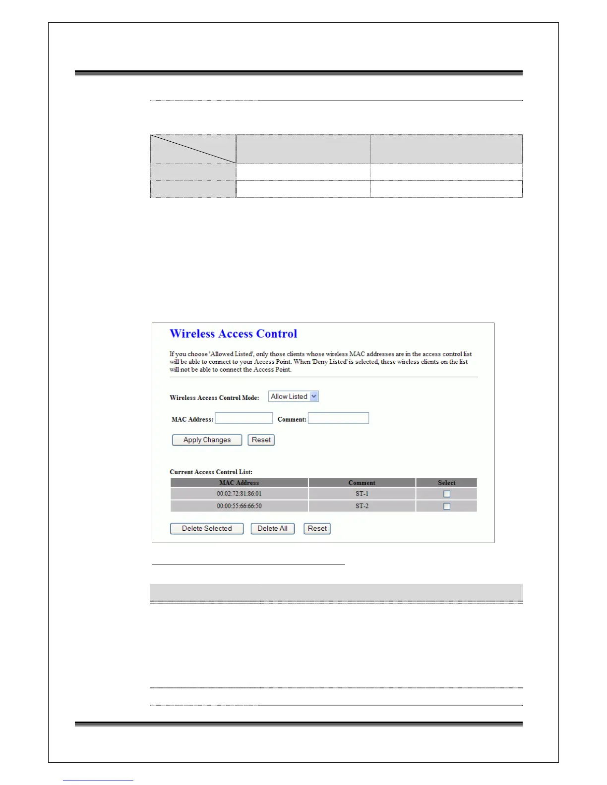 If you enable wireless access control, only those clients whose wireless MAC