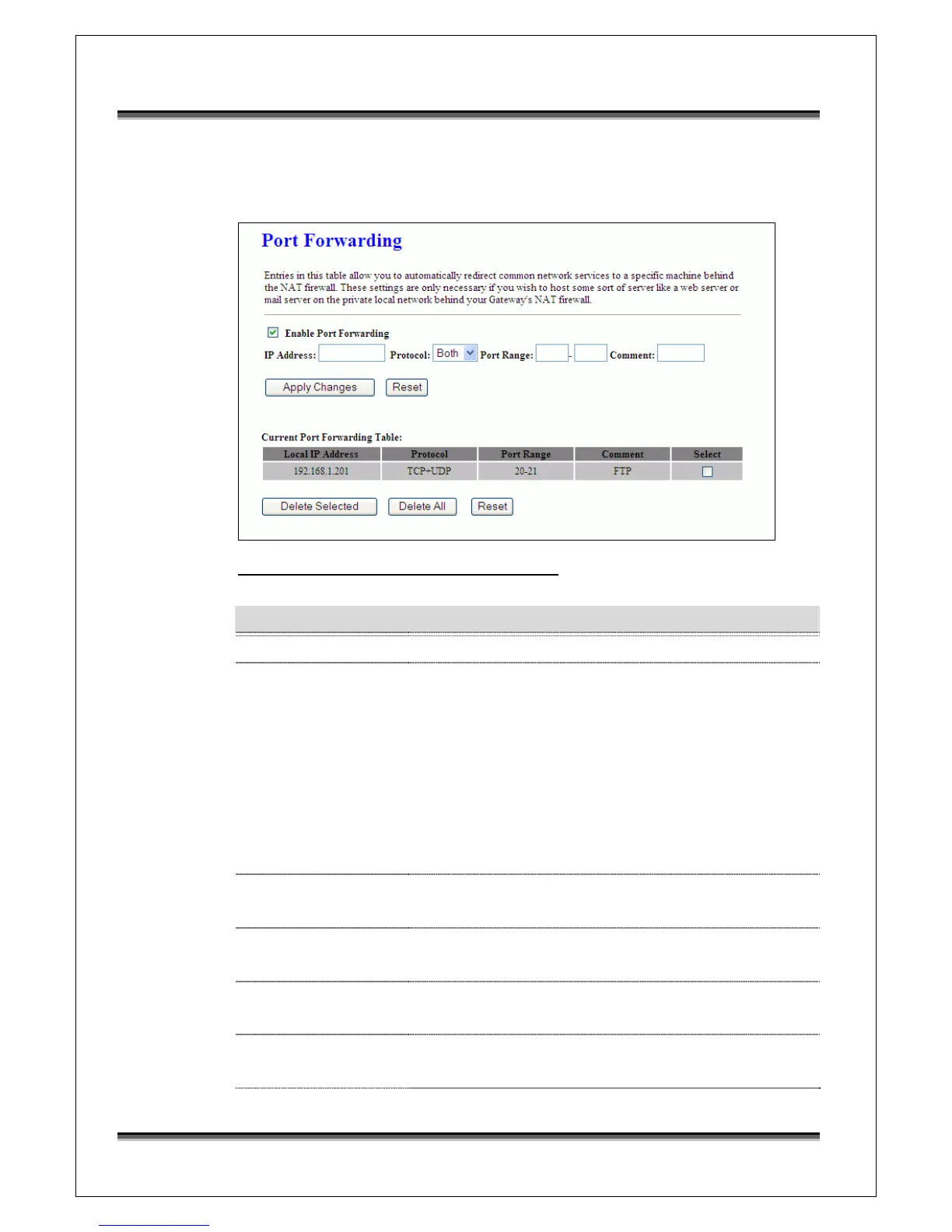 Enable Port Forwarding Click to enable the Port Forwarding security function.