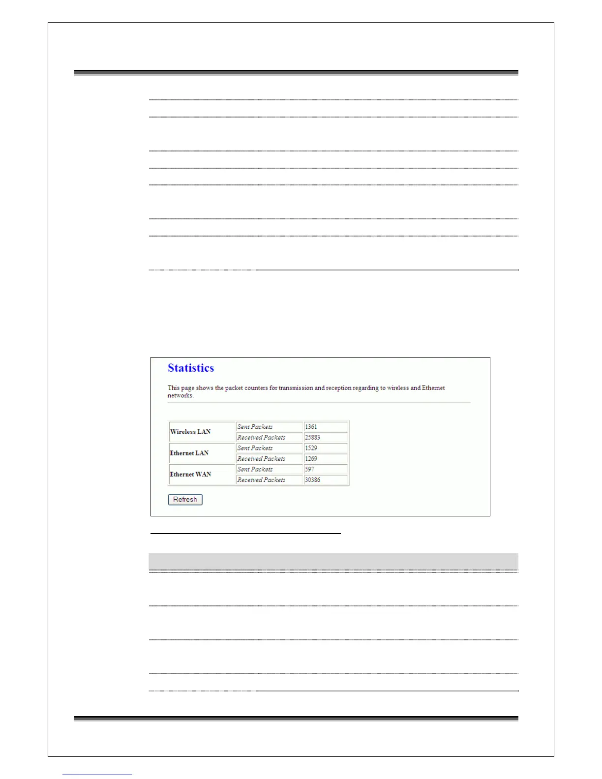 This page shows the packet counters for transmission and reception regarding