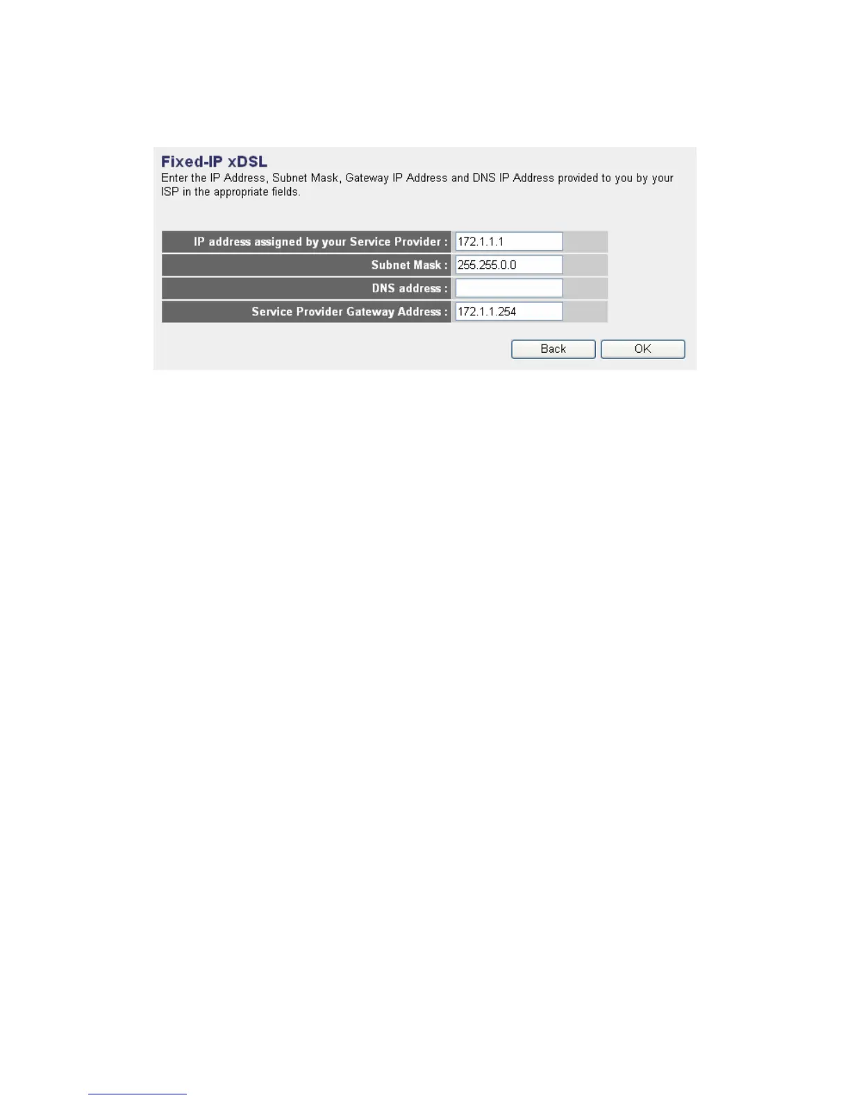 2-3-2. Setup procedure for “Fixed-IP xDSL”