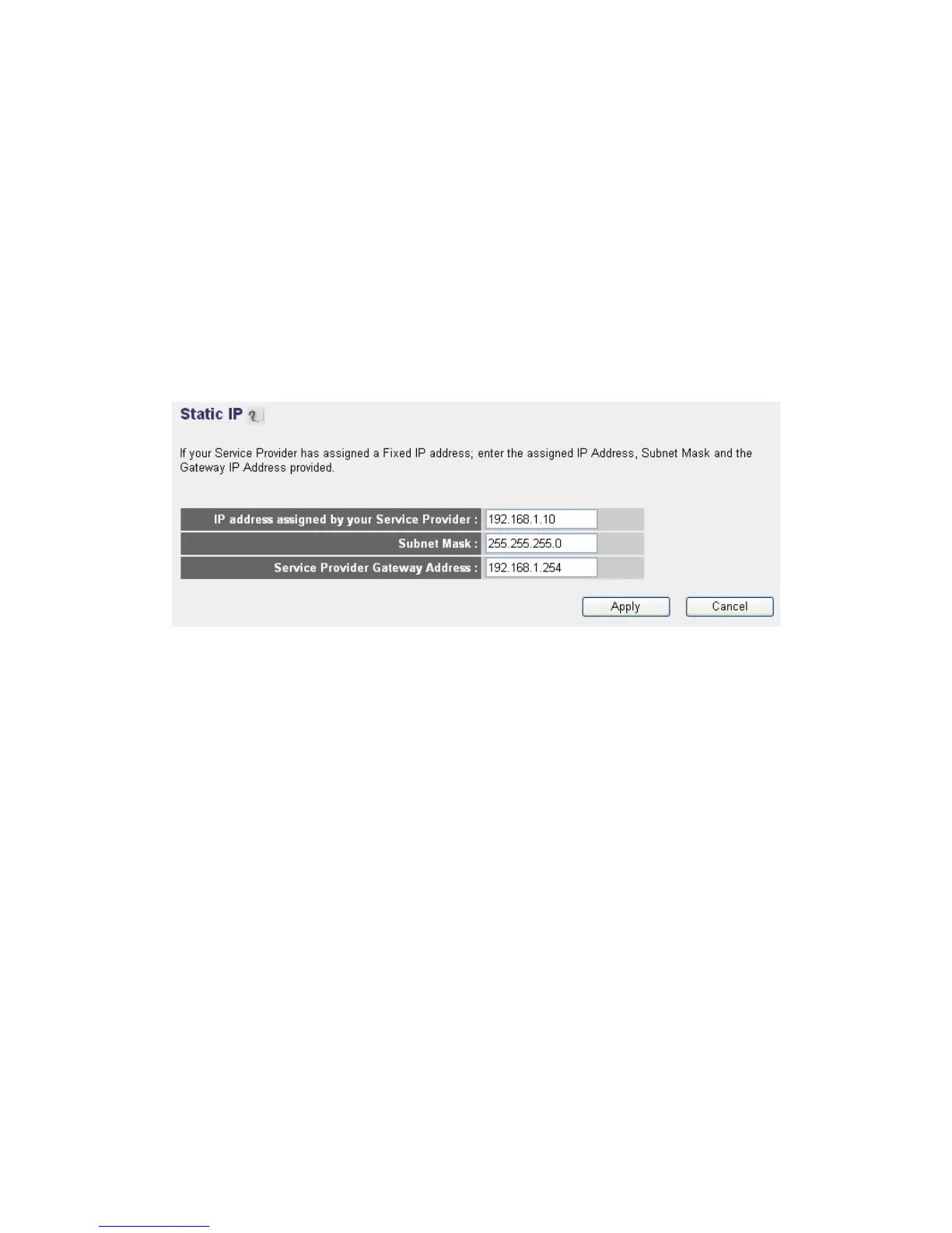 IP address assigned by your Service Provider: Please input IP address