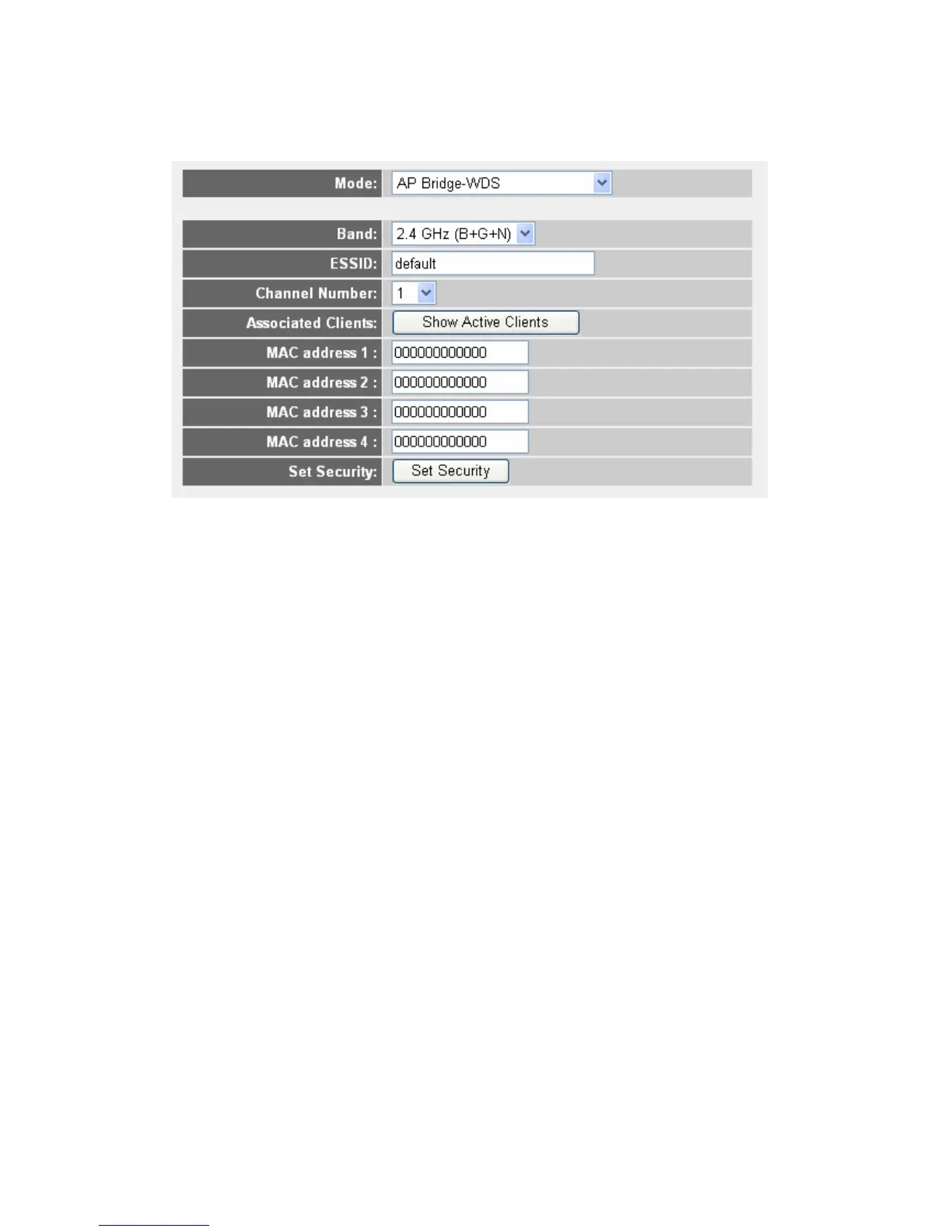 MAC address 1 to 4: Input the MAC address of other wireless routers.