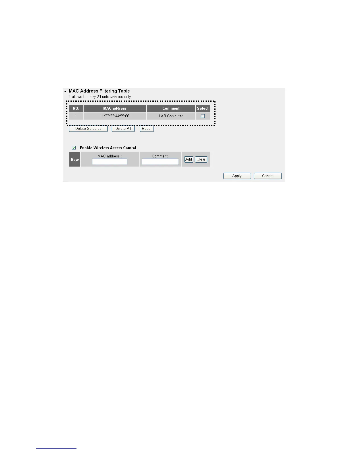 Up to 20 MAC addresses can be assigned by using this function. Please click