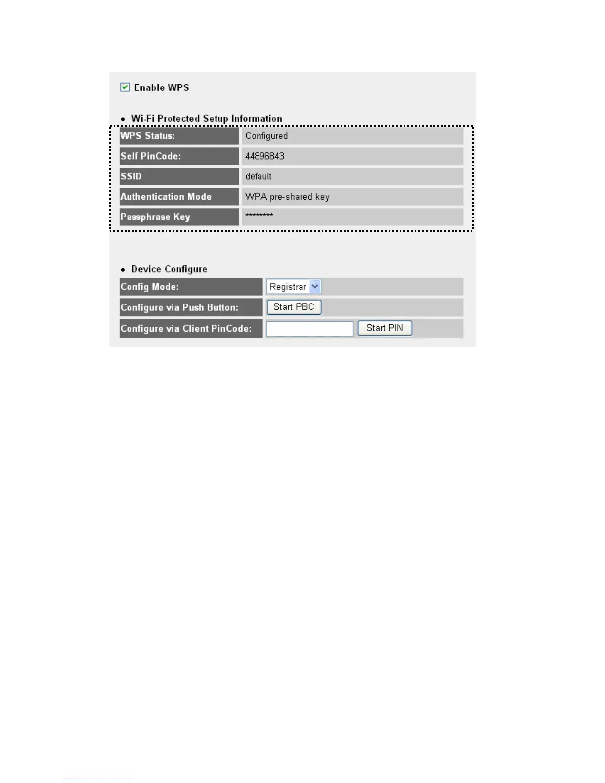 Enable WPS: Check this box to enable WPS function, uncheck it to