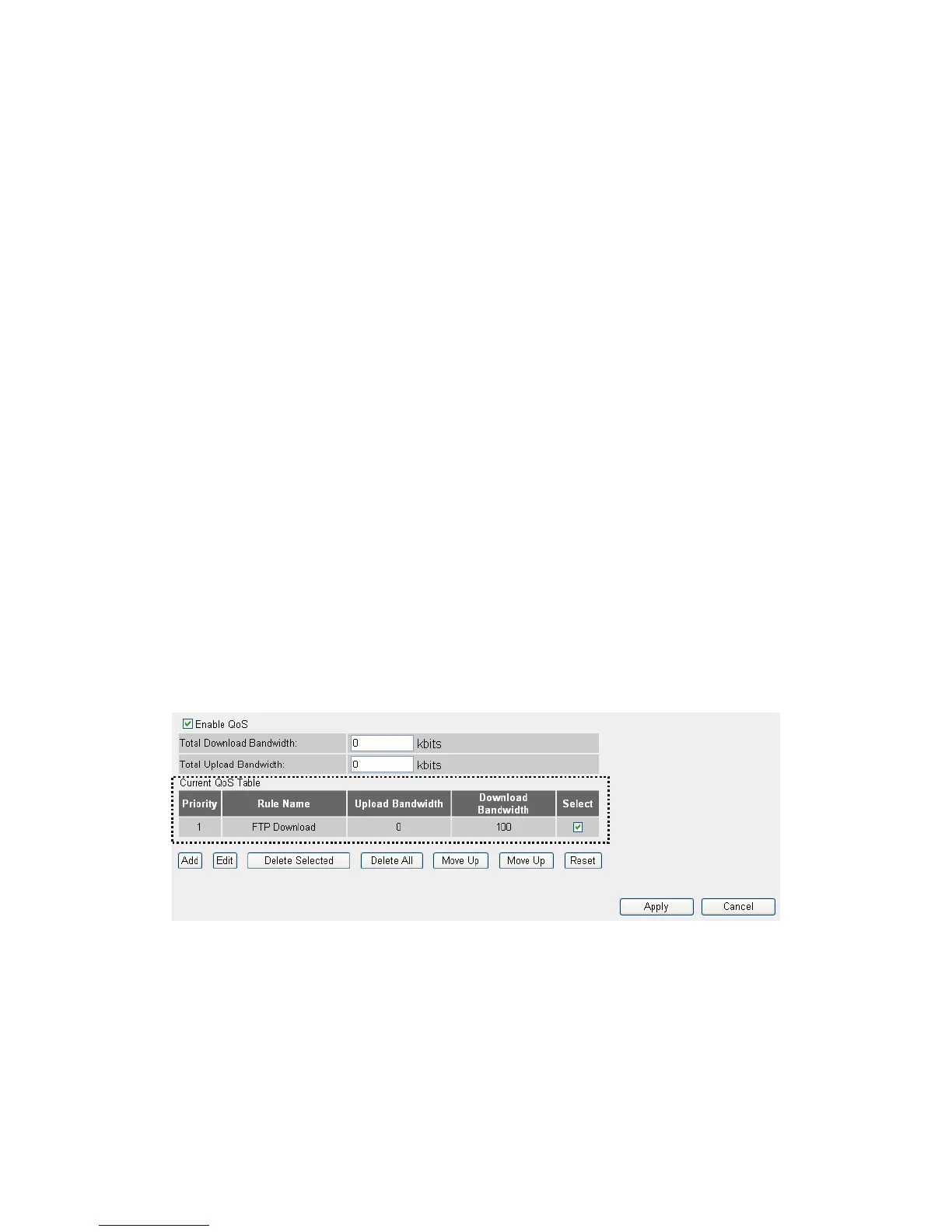 Enable QoS: Check this box to enable QoS function, unselect this box if