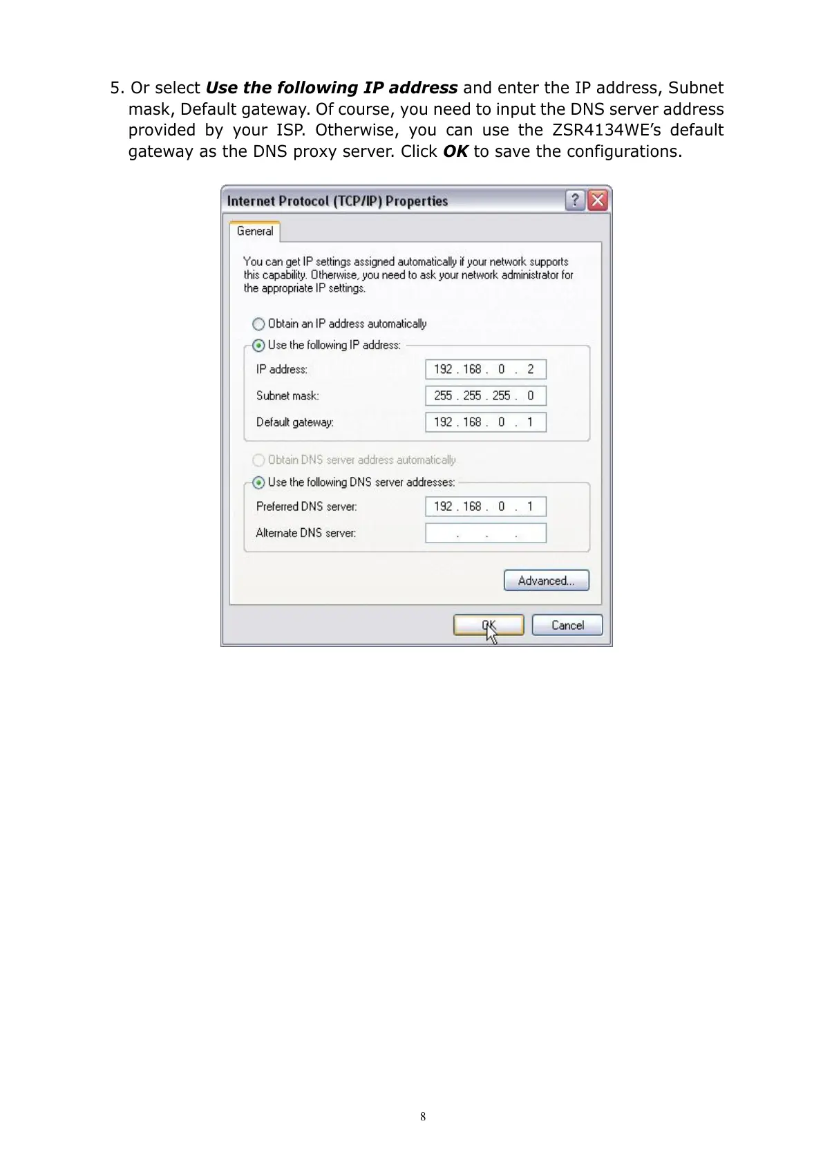 provided by your ISP. Otherwise, you can use the ZSR4134WE’s default