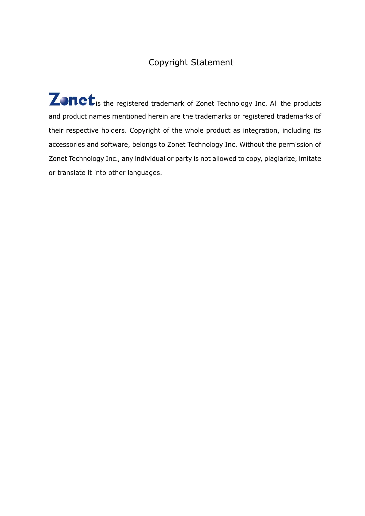accessories and software, belongs to Zonet Technology Inc. Without the permission of