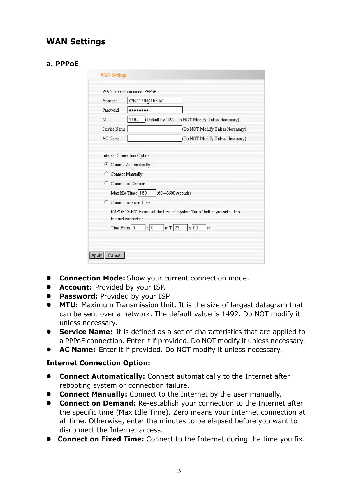 a PPPoE connection. Enter it if provided. Do NOT modify it unless necessary.