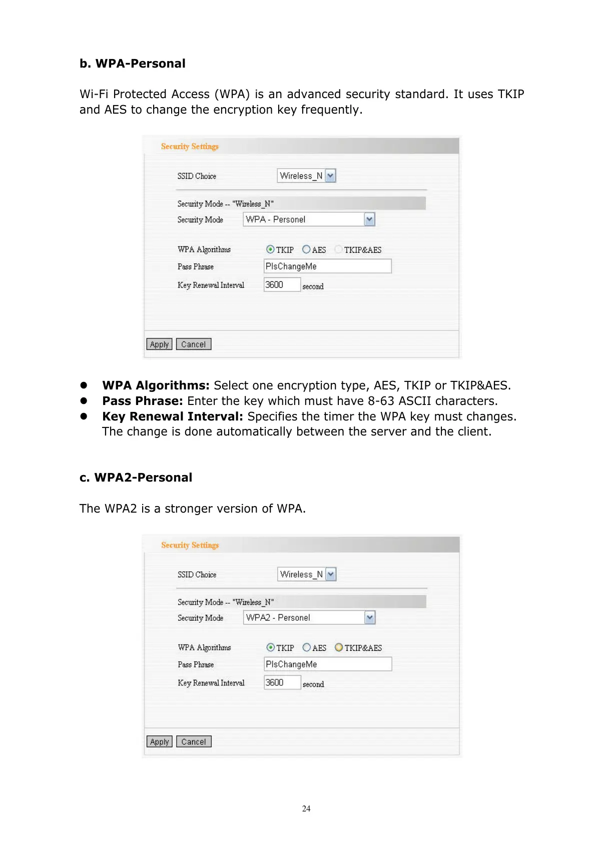 WPA Algorithms: Select one encryption type, AES, TKIP or TKIP&AES.