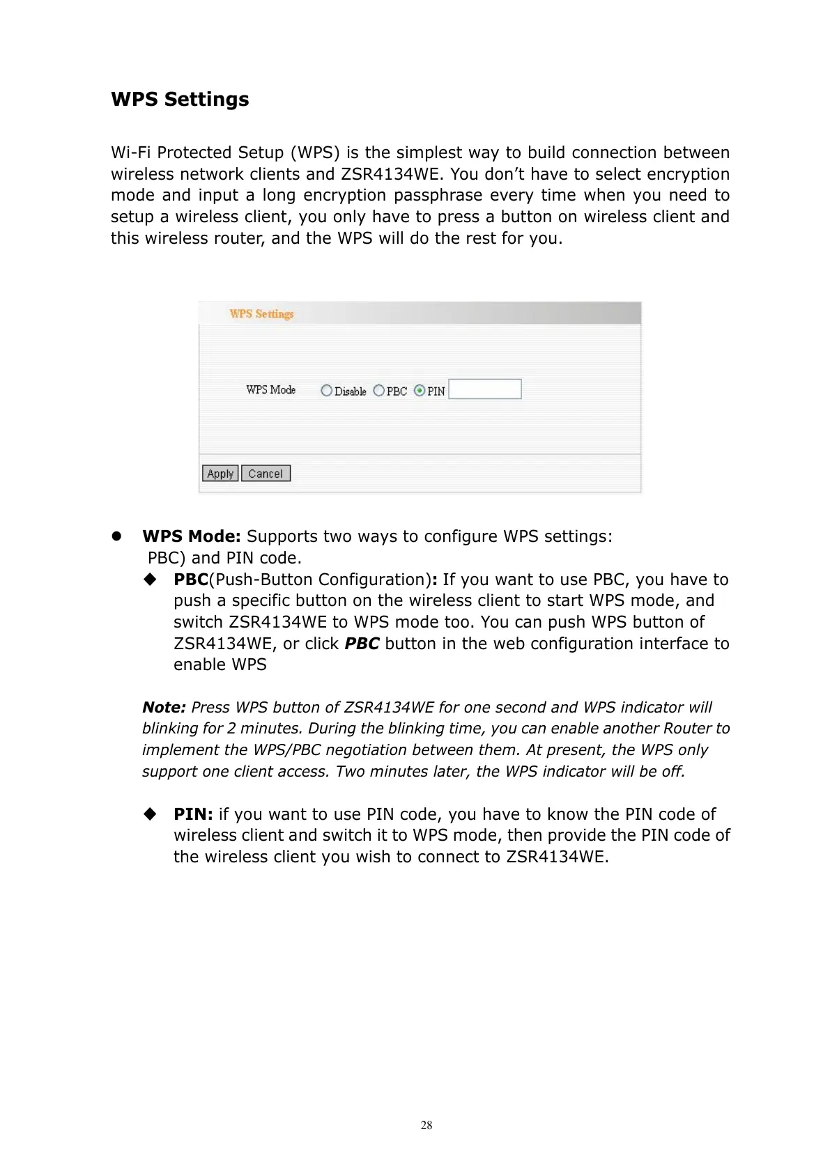 ZSR4134WE, or click PBC button in the web configuration interface to