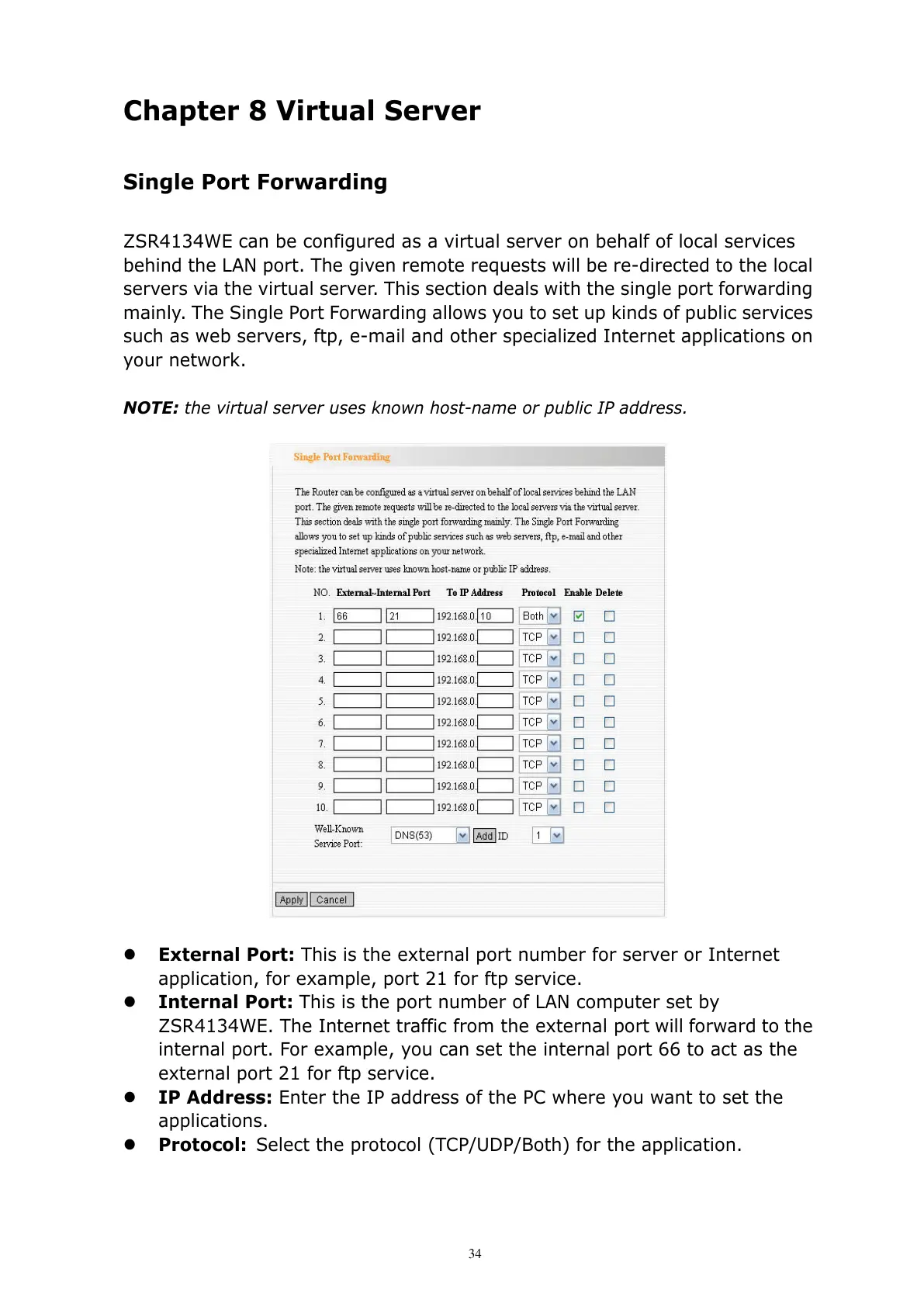 ZSR4134WE. The Internet traffic from the external port will forward to the