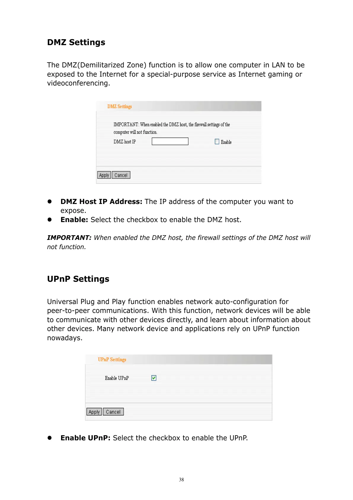 IMPORTANT: When enabled the DMZ host, the firewall settings of the DMZ host will