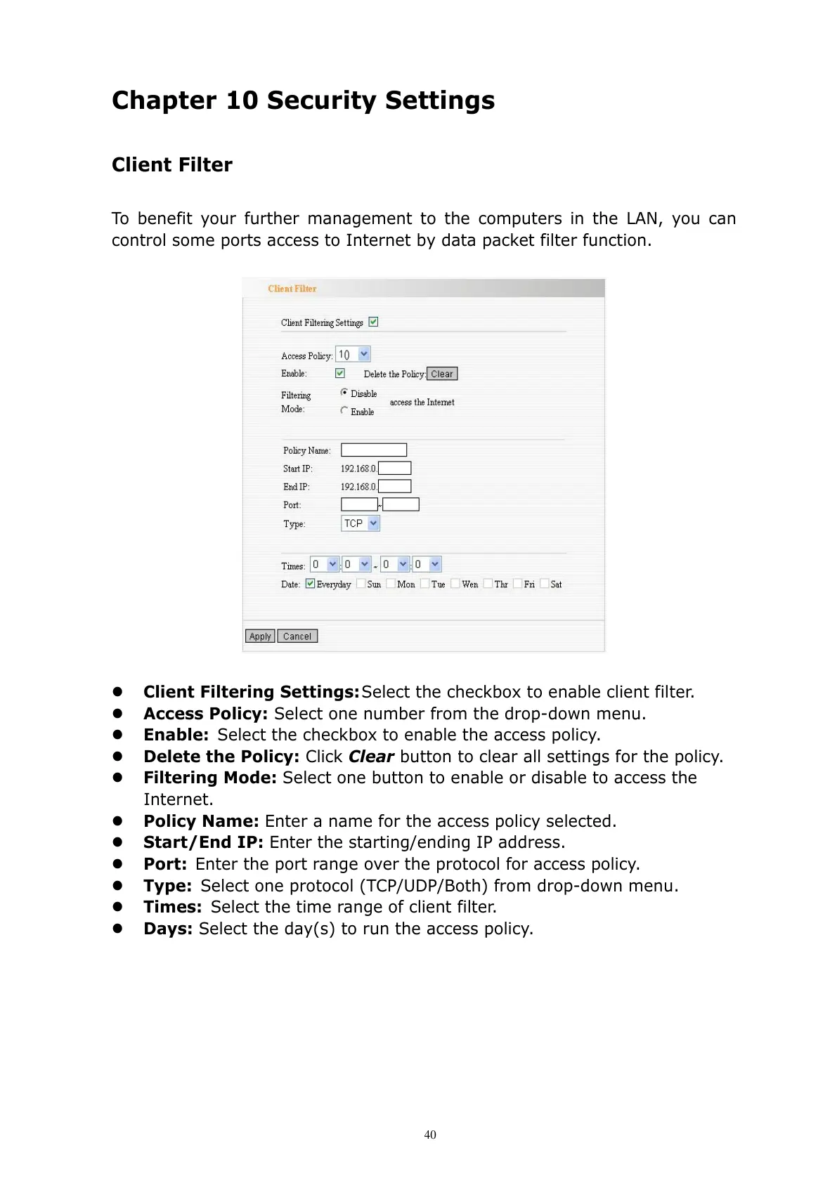 Delete the Policy: Click Clear button to clear all settings for the policy.