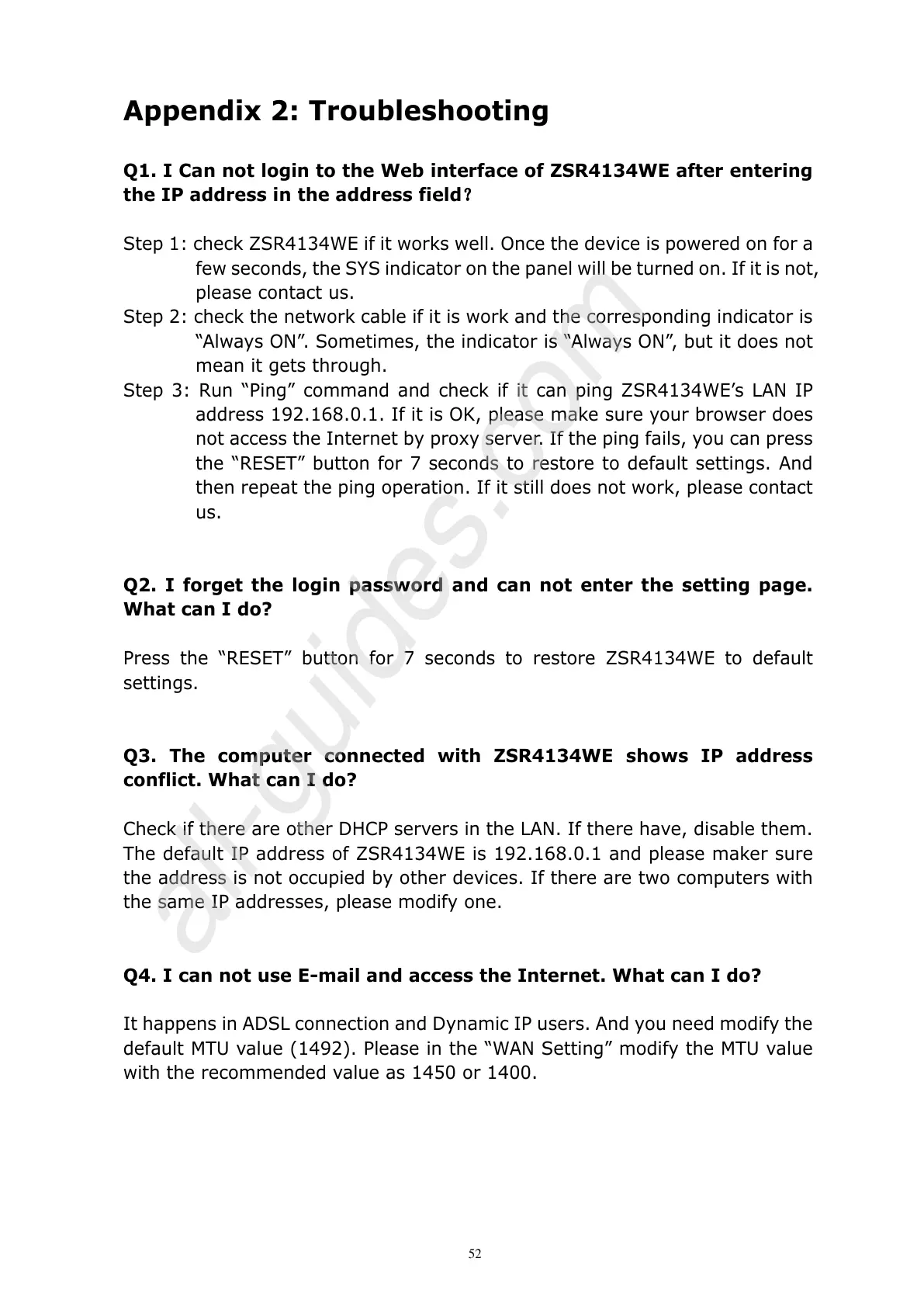 Q1. I Can not login to the Web interface of ZSR4134WE after entering