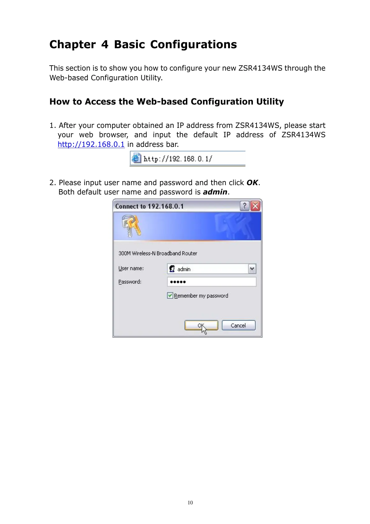 This section is to show you how to configure your new ZSR4134WS through the