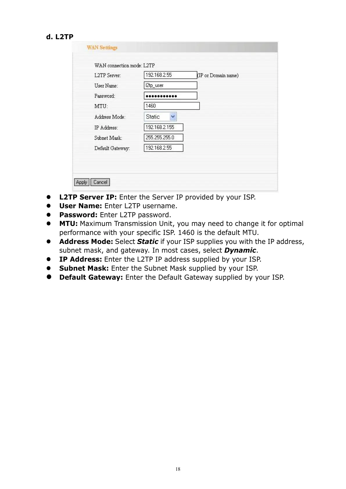 User Name: Enter L2TP username.