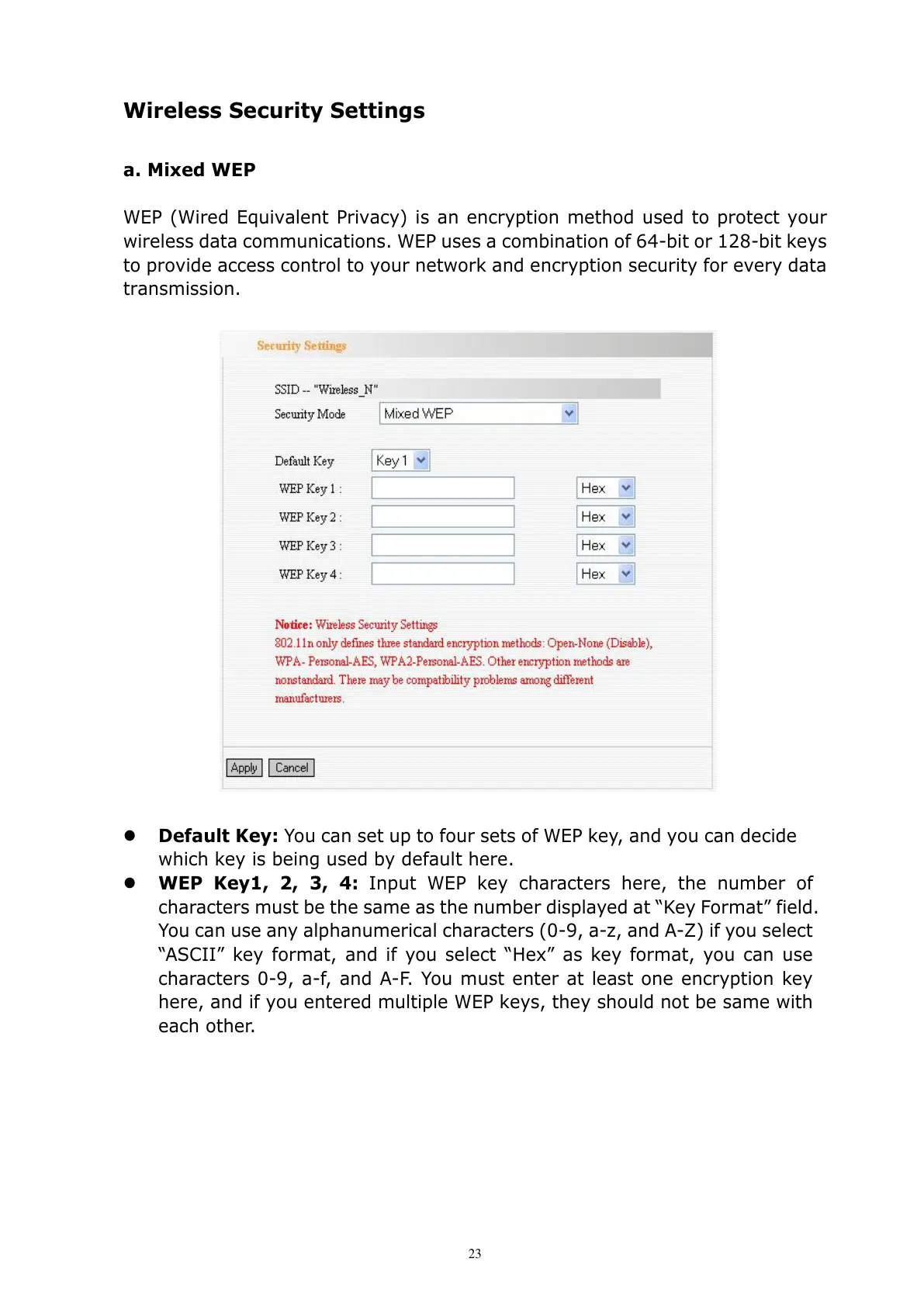 Default Key: You can set up to four sets of WEP key, and you can decide