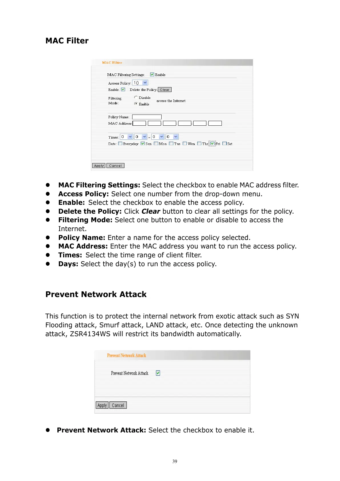attack, ZSR4134WS will restrict its bandwidth automatically.