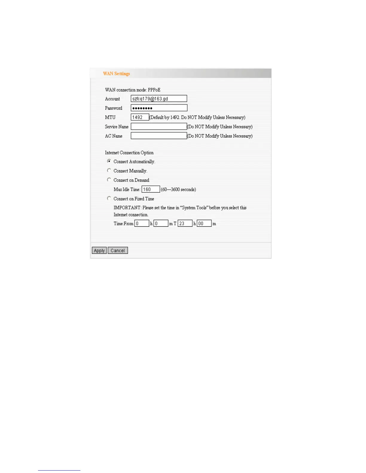 the specific time (Max Idle Time). Zero means your Internet connection at