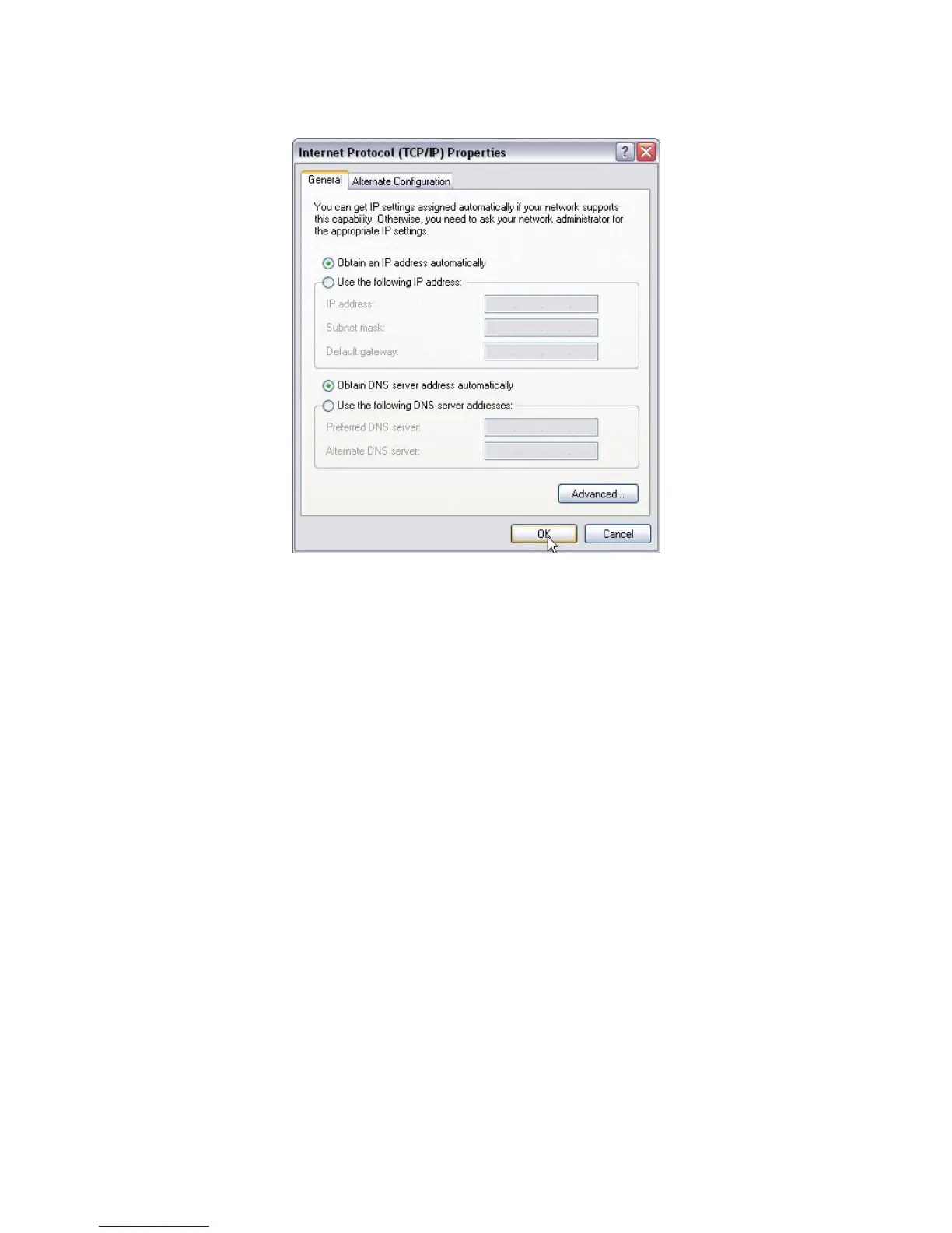 5. Select Obtain an IP address automatically and Obtain DNS server