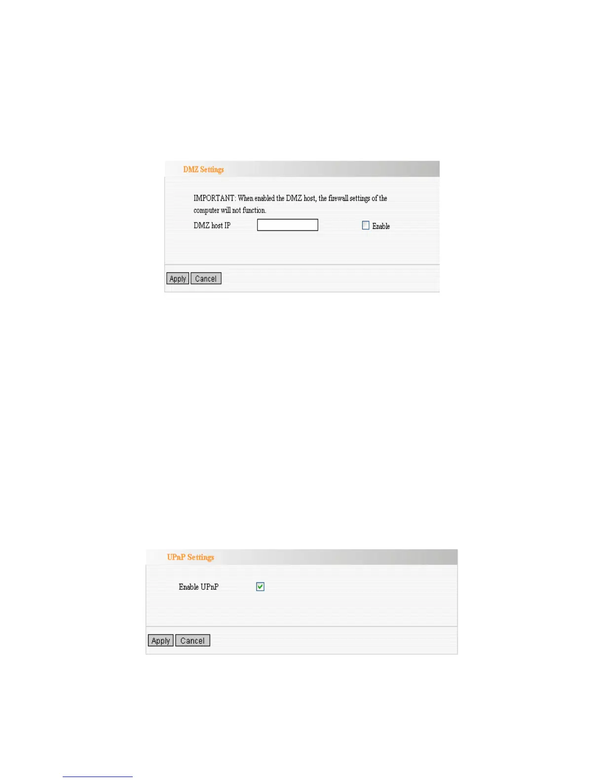 IMPORTANT: When enabled the DMZ host, the firewall settings of the DMZ host will not