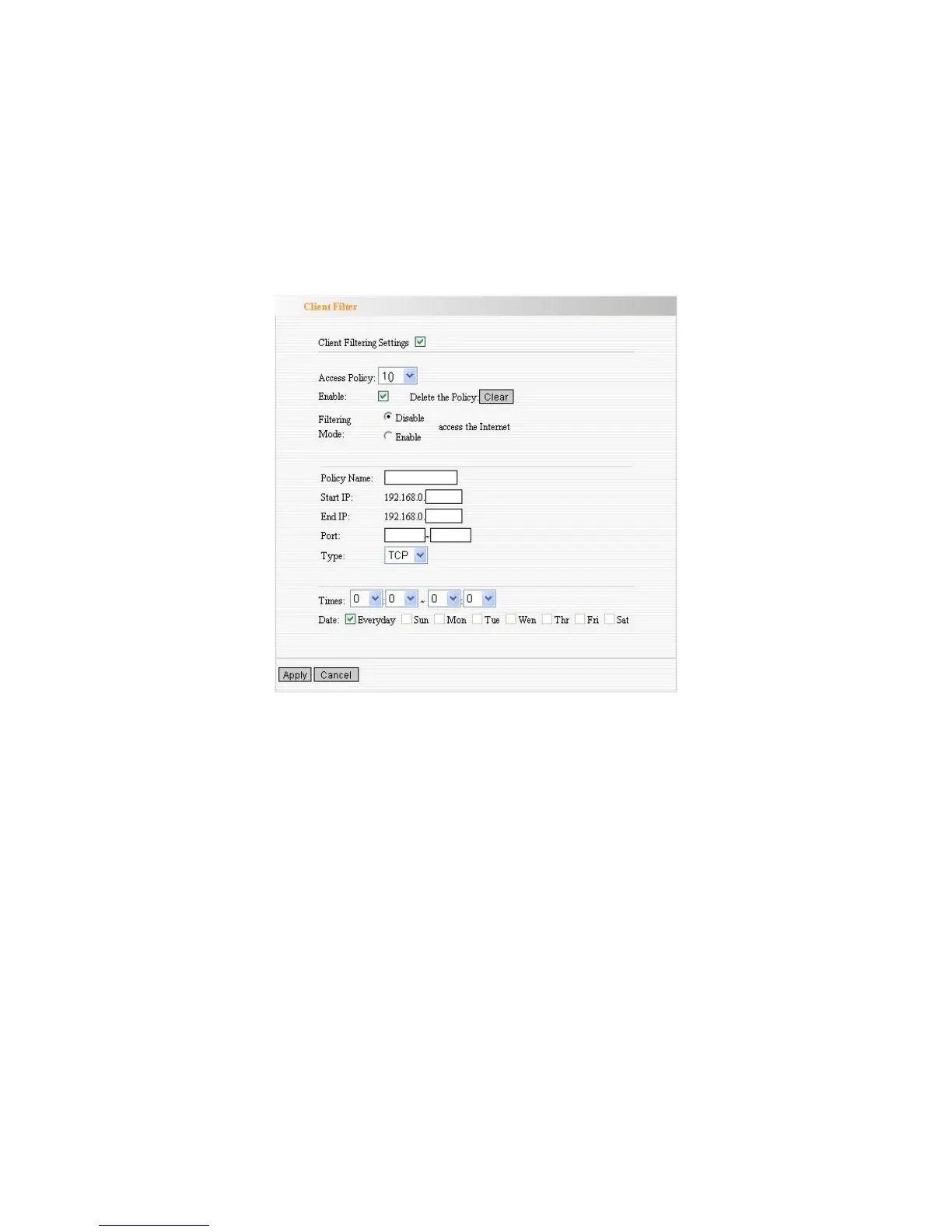 Delete the Policy: Click Clear button to clear all settings for the policy.