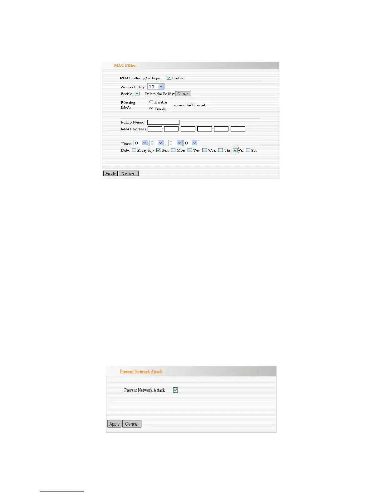 MAC Filtering Settings: Select the checkbox to enable MAC address filter.