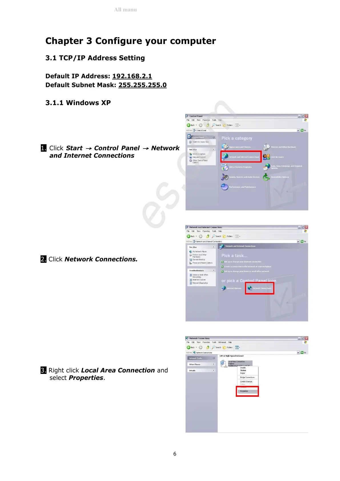Zonet ZSR4174WE - Chapter 3 Configure Your Computer; TCP;IP Address Setting; Windows XP