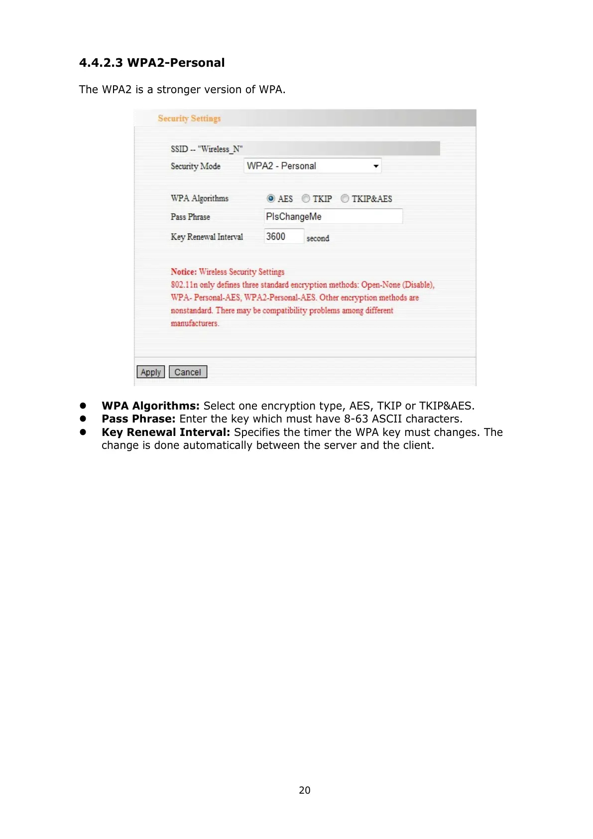WPA Algorithms: Select one encryption type, AES, TKIP or TKIP&AES.