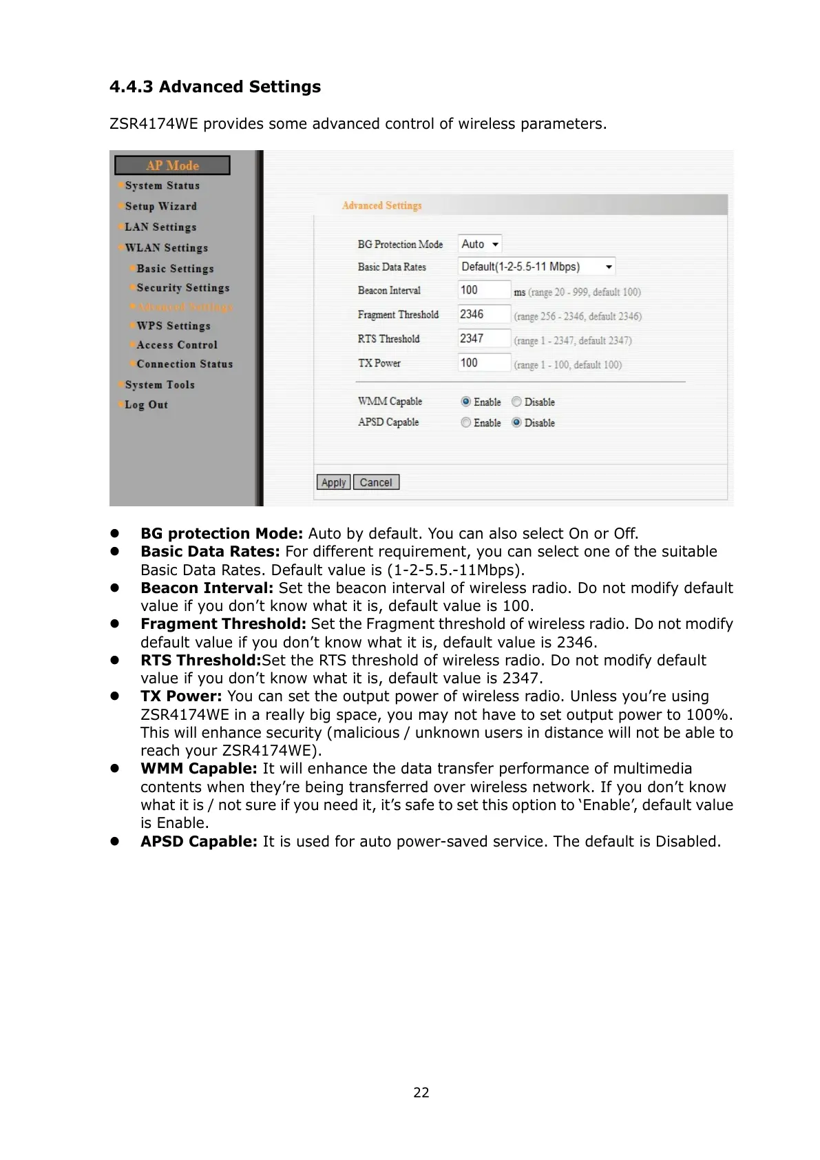 APSD Capable: It is used for auto power-saved service. The default is Disabled.