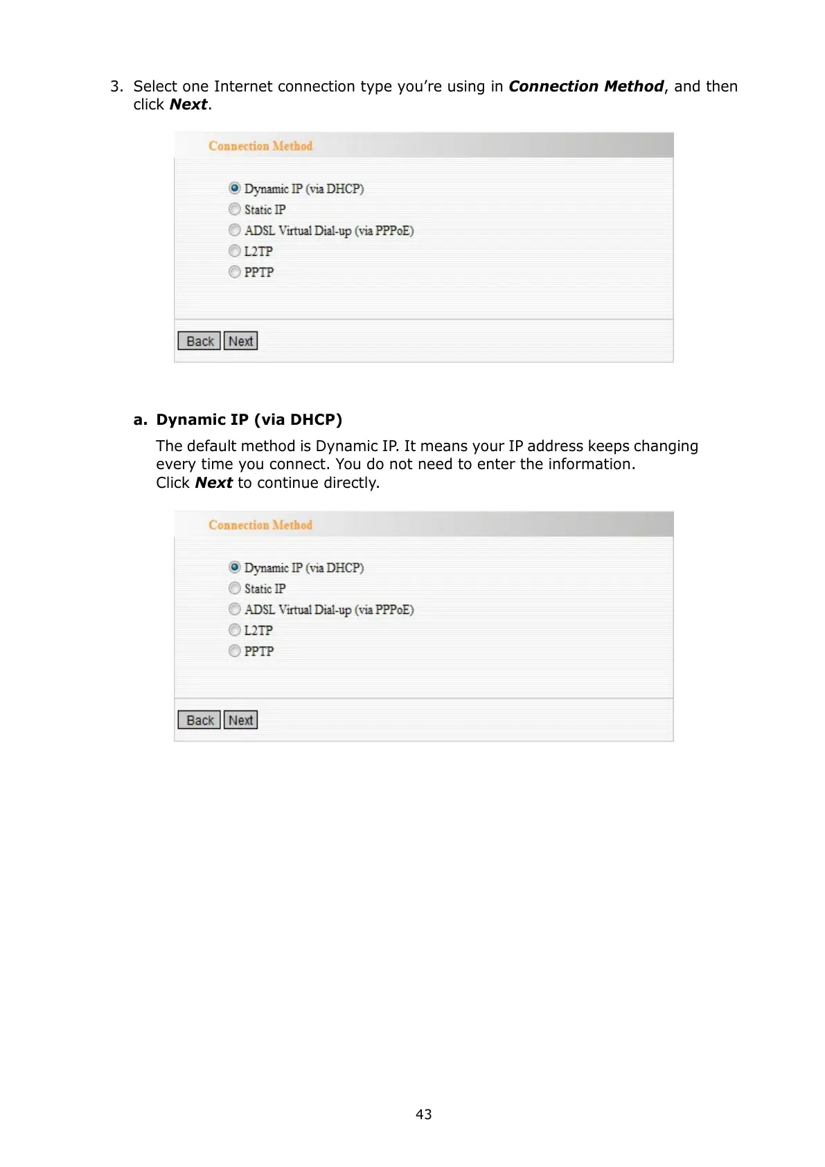 3. Select one Internet connection type you’re using in Connection Method, and then