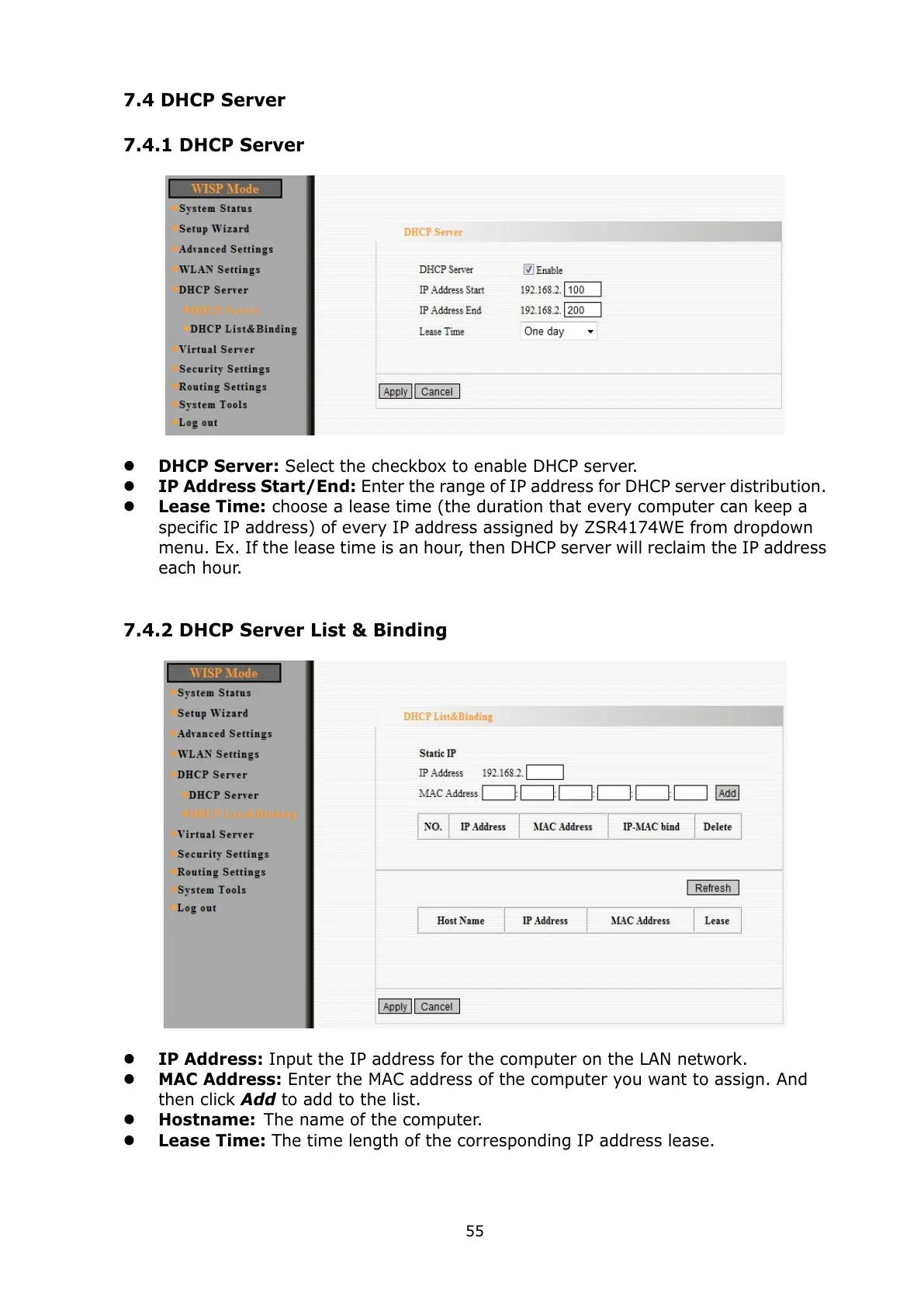 menu. Ex. If the lease time is an hour, then DHCP server will reclaim the IP address