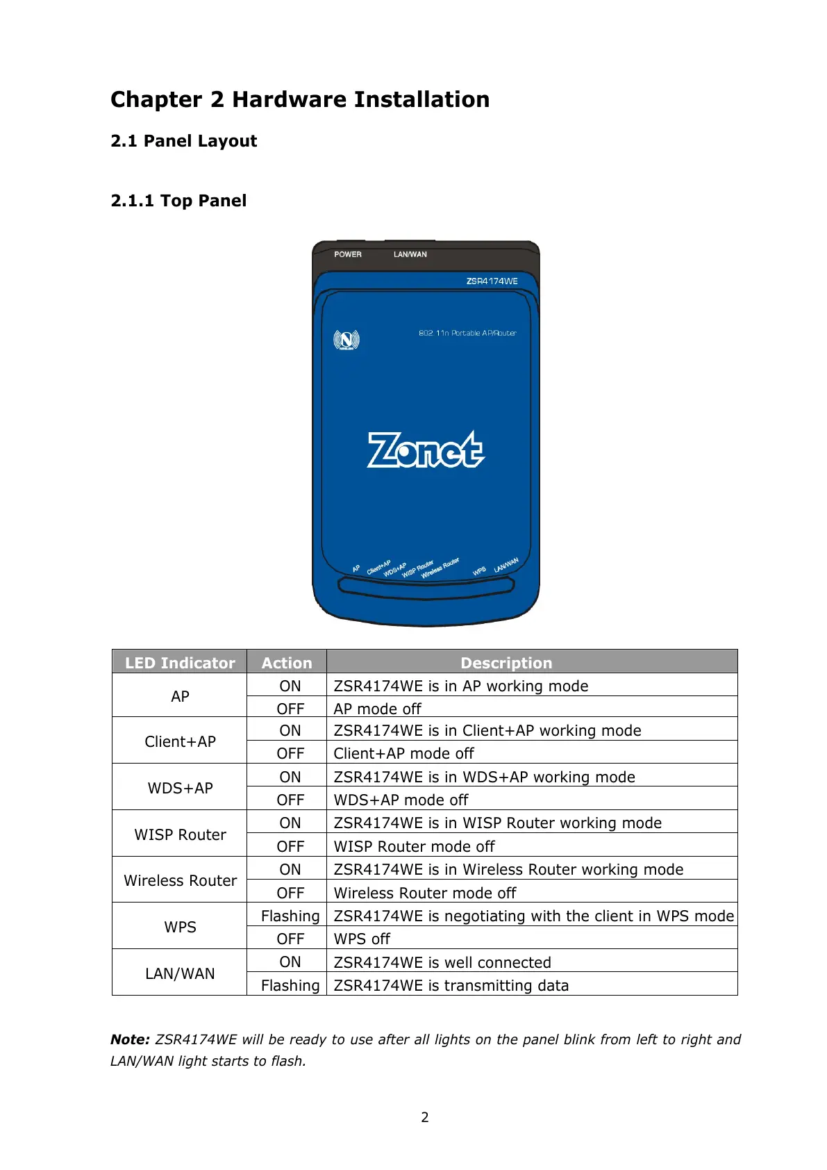 Note: ZSR4174WE will be ready to use after all lights on the panel blink from left to right and