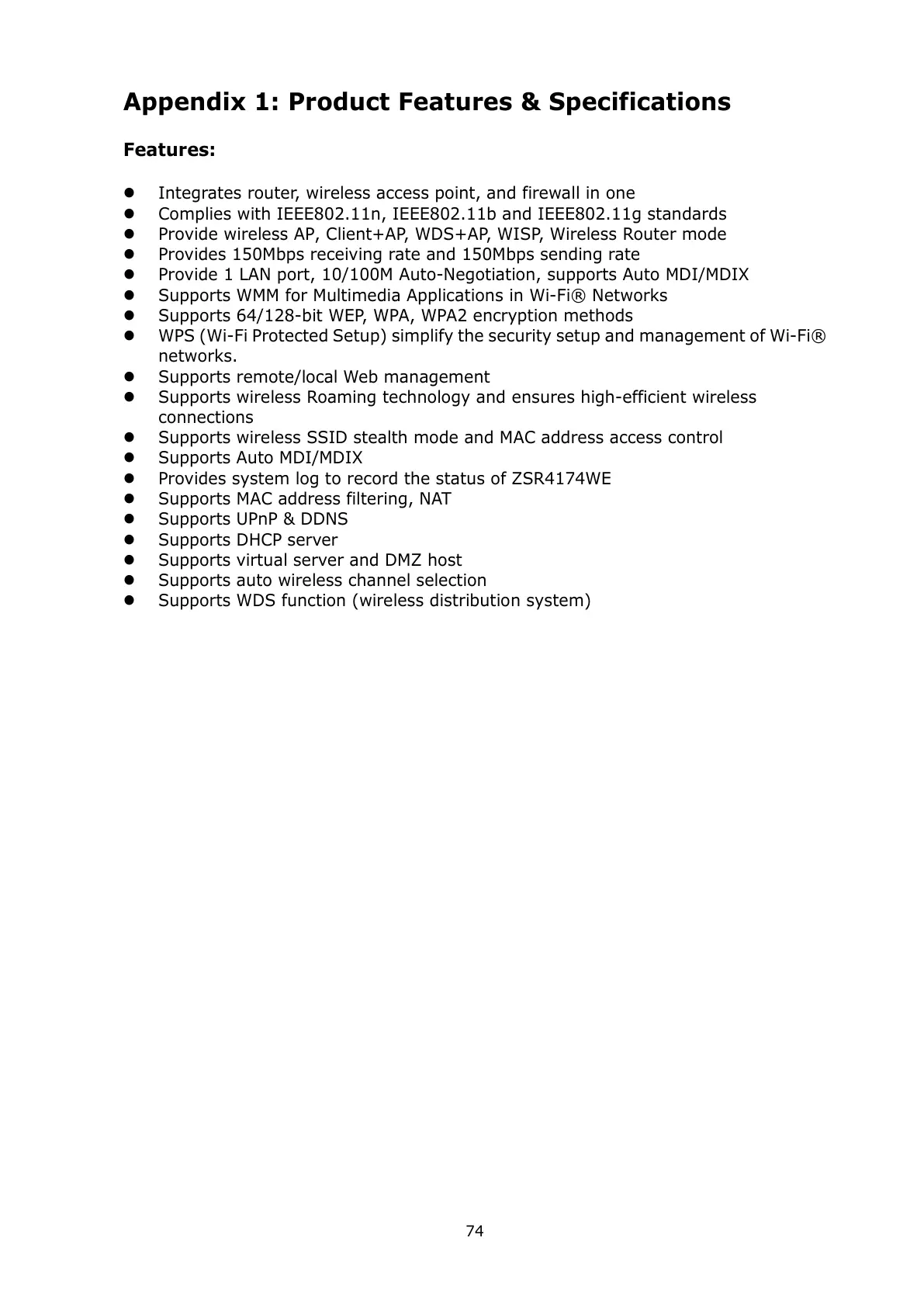 Appendix 1: Product Features & Specifications