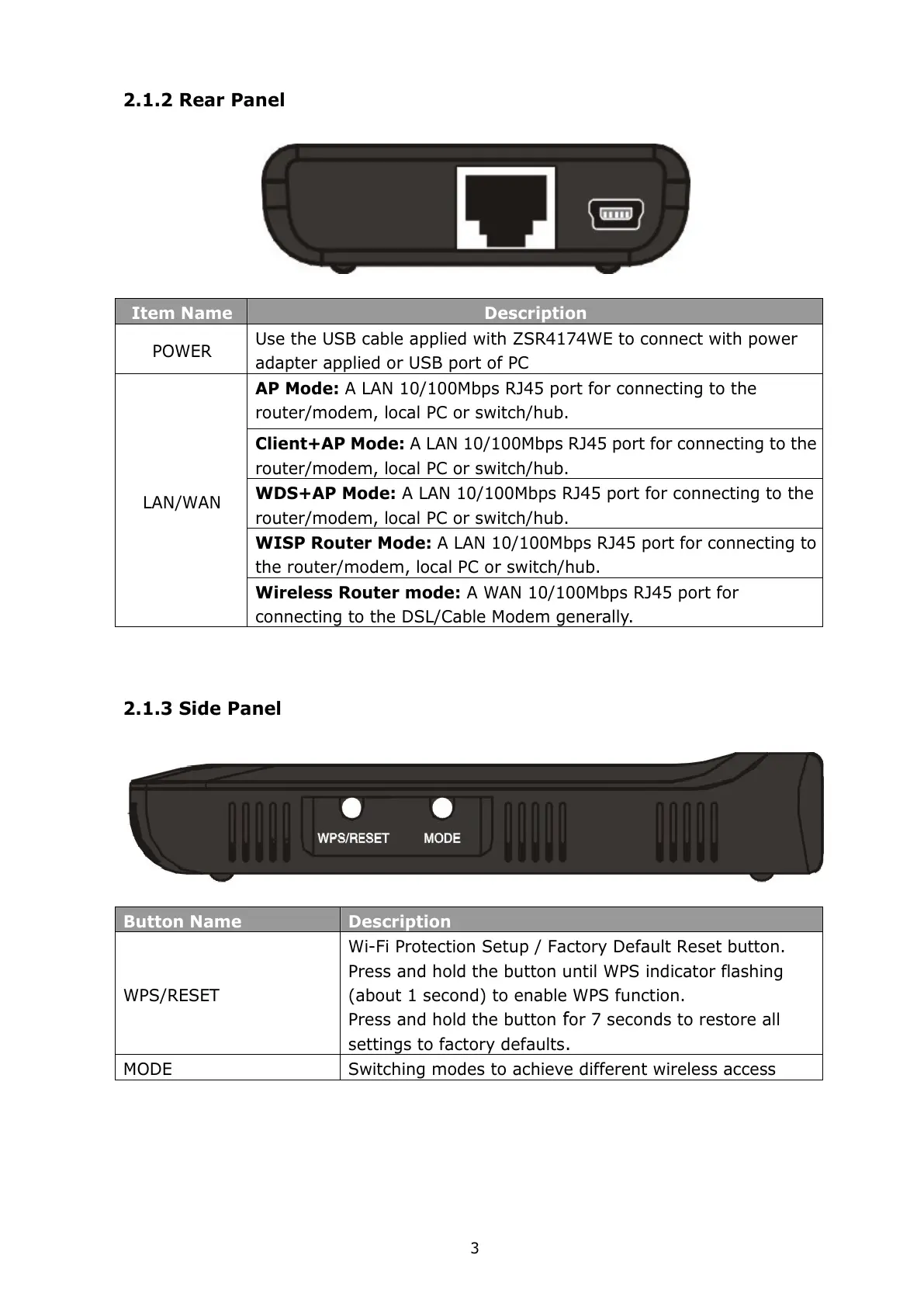 Wireless Router mode: A WAN 10/100Mbps RJ45 port for