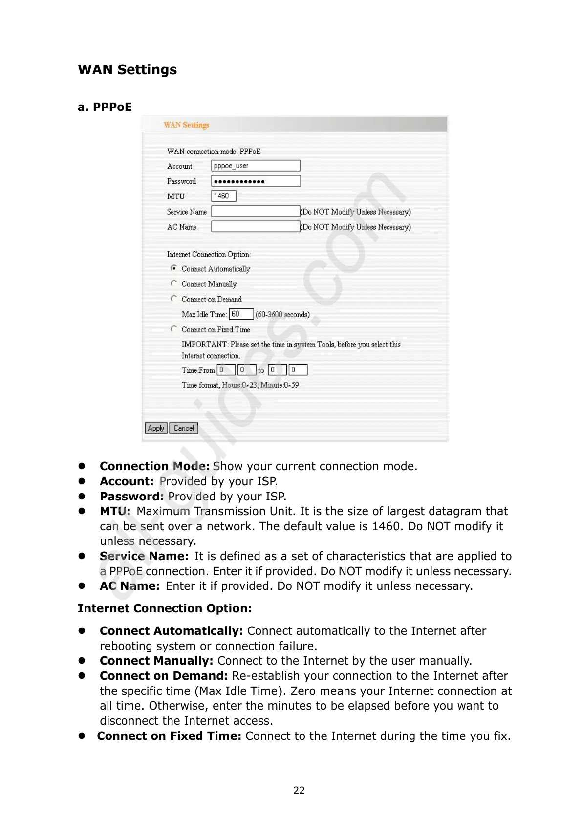 the specific time (Max Idle Time). Zero means your Internet connection at