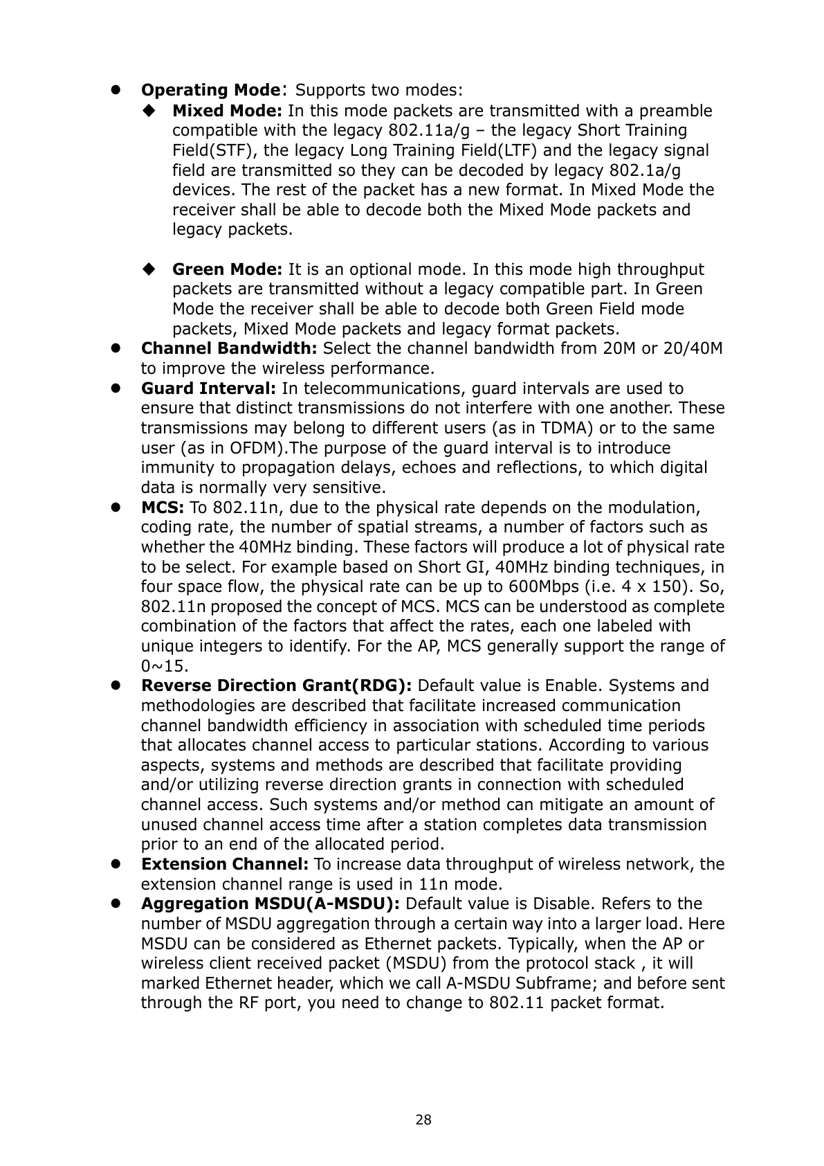 Aggregation MSDU(A-MSDU): Default value is Disable. Refers to the
