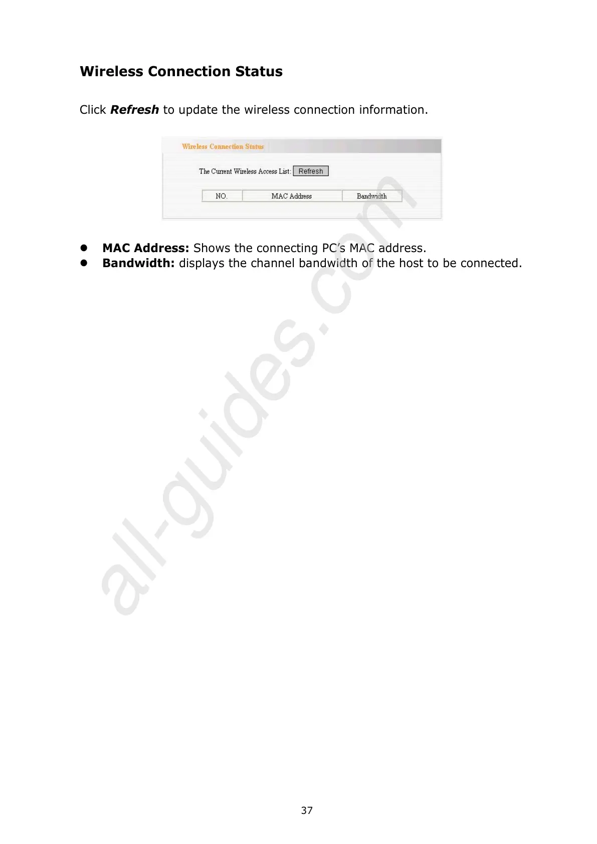 MAC Address: Shows the connecting PCs MAC address.
