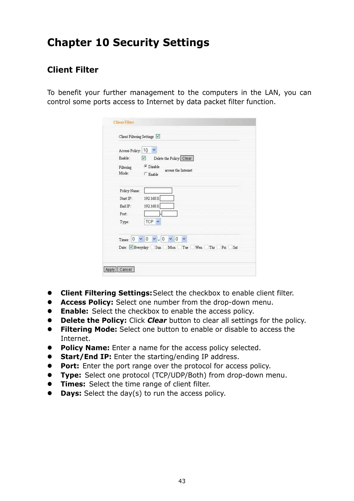 Client Filtering Settings: Select the checkbox to enable client filter.