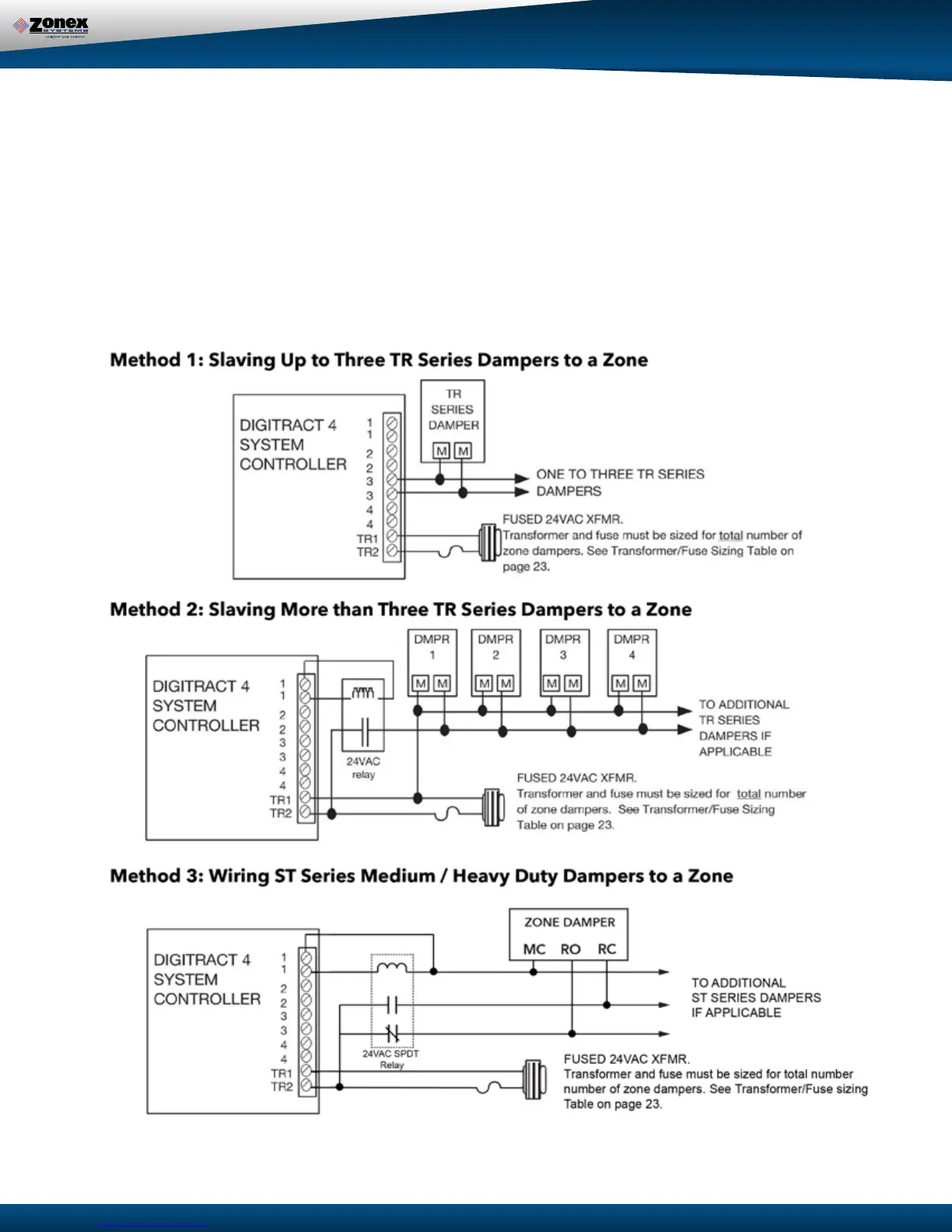 There are three methods of wiring the zone dampers. If necessary, you can mix methods on different zones to suit your