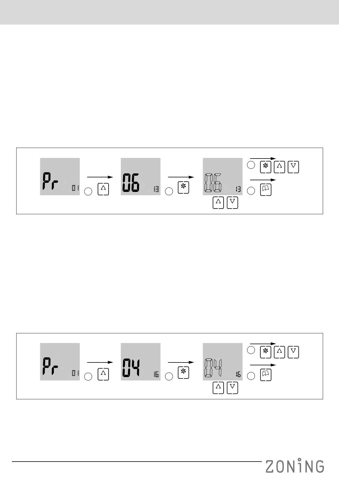valore richiesto con "UP" e "DOWN" (02: due fasce