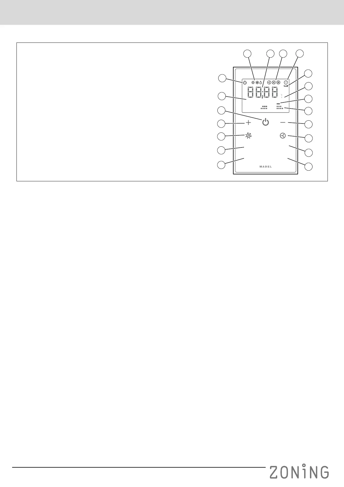 19 Indicatori modalità di funzionamento (freddo/caldo/caldaia)