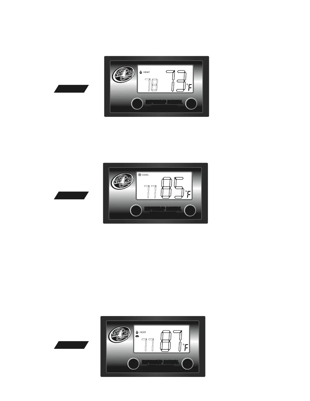 (e.g., fan) when the temperature in your terrarium rises above the programmed temperature setting. To switch between HEAT and COOL