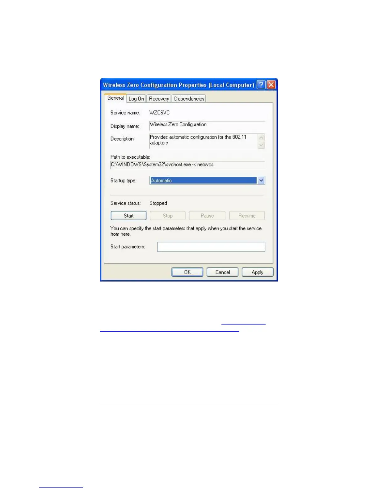 The Windows Zero Configuration service is now enabled. You