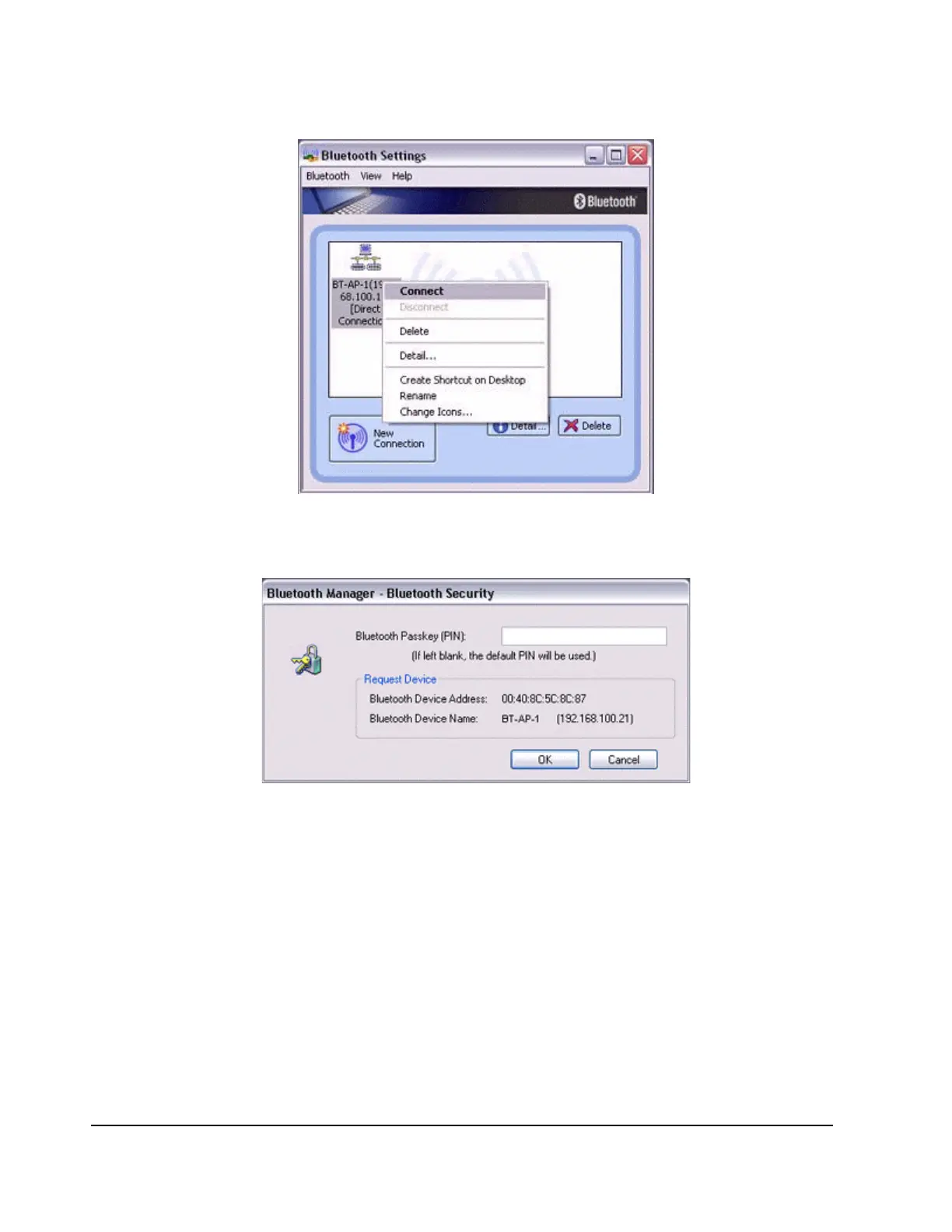 Enter the passkey under [Bluetooth Passkey (PIN code)], and then click on the
