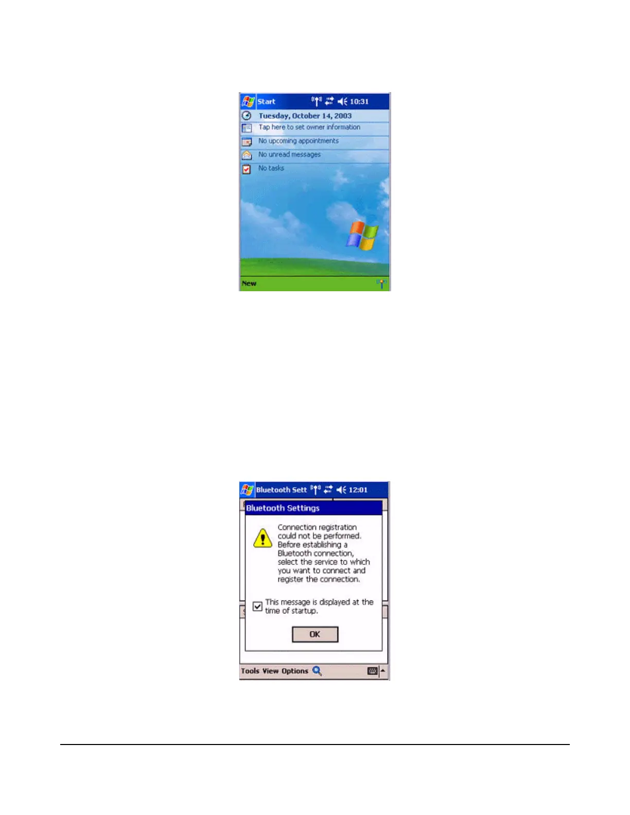 The message "Connection not registered" will appear if no Bluetooth device has been